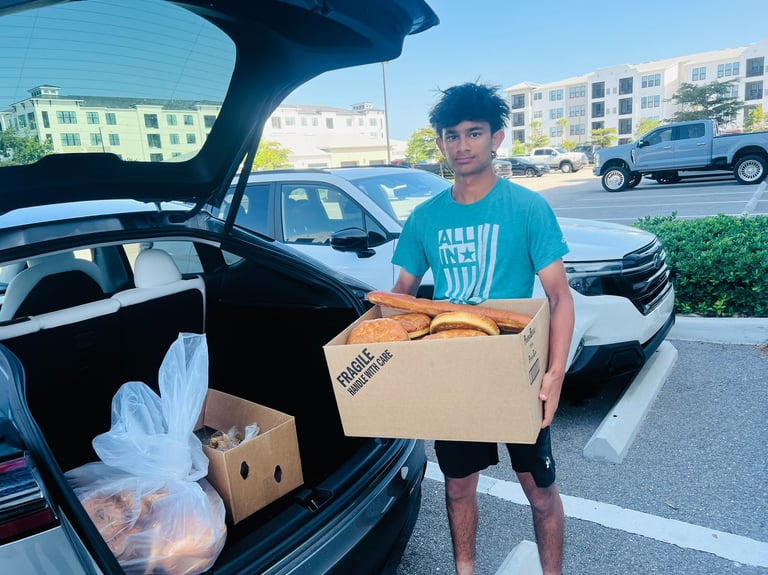 We began partnering with local restaurants and cafés to rescue surplus food that would otherwise be discarded. Instead of ending up in the trash, those meals are delivered to food banks across Manatee County. What started as a small initiative quickly became a consistent system, coordinating pickups, organizing volunteers, and making sure recovered food reached the people who needed it most.