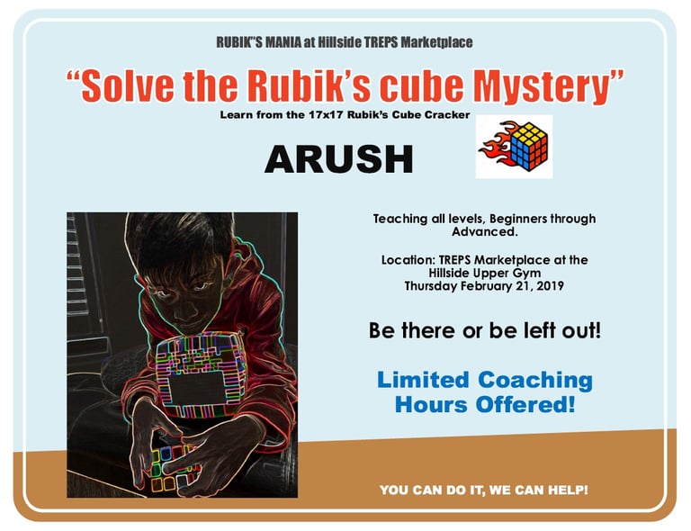 In fifth grade, I turned that obsession into something a little unexpected. Through my elementary school’s TREPS program, I ran a stall offering cube-solving coaching to other students. What started as something I loved doing alone became something I could teach, and surprisingly, it was a hit.